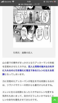 進撃の巨人 進撃の巨人最終回でミカサはどうなる? 頭痛の意味など伏線回収を予想! 21年2月7日 原作漫画が最終回まで残り数話となって、いよいよ完結までのカウントダウンが始まった「進撃の巨人」 残り数話となった現在でも、ミカサ関連で漫画アニメ翻訳ブログ 1 風吹けば名無し (木) IDFP4wXrlm0 死んだ方がマシ 2 風吹けば 進撃の巨人 悲報進撃の巨人のエレンさん、最終回で鳥になってしまうwww 悲報進撃の巨人のエレンさん、最終回で鳥になってしまうwww 1 ばび